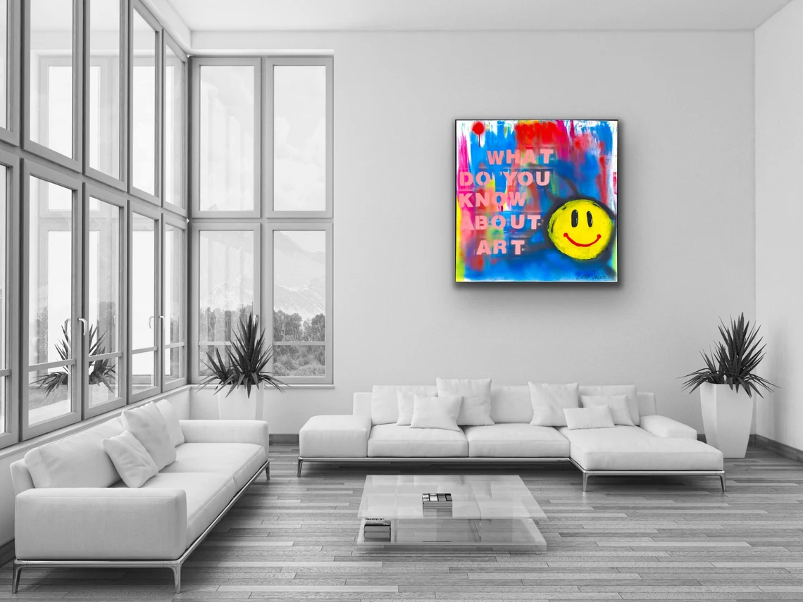 “What Do You Know About Art” is a bold conceptual piece that challenges the entire idea of artistic authority, rules, and definitions.